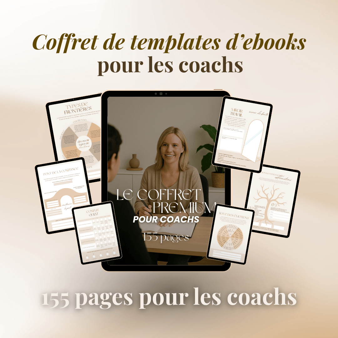 Ces coffrets sont déjà prêts : exercices, pages écrites, mise en page Canva, version imprimable ou PDF à vendre. Tu ajoutes ton nom, ton logo, et tu peux les proposer dès cette semaine.