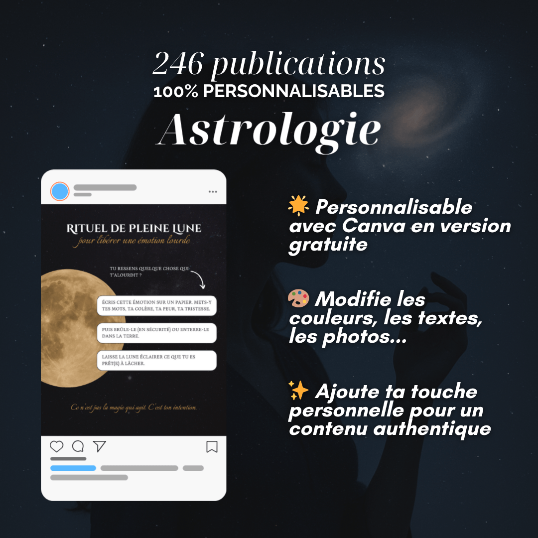 Ce pack de publications est idéal pour les professionnel(le)s de l'astrologie souhaitant communiquer efficacement sur les réseaux sociaux sans y passer des heures.