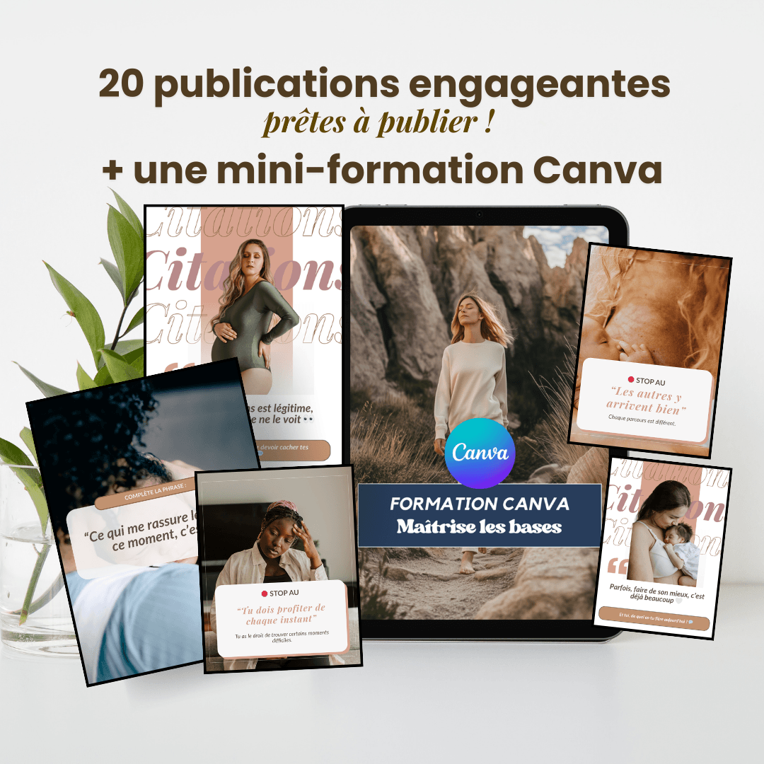 Ajoute à cela une mini-formation Canva pour t'aider à maîtriser pleinement la personnalisation de tes publications.