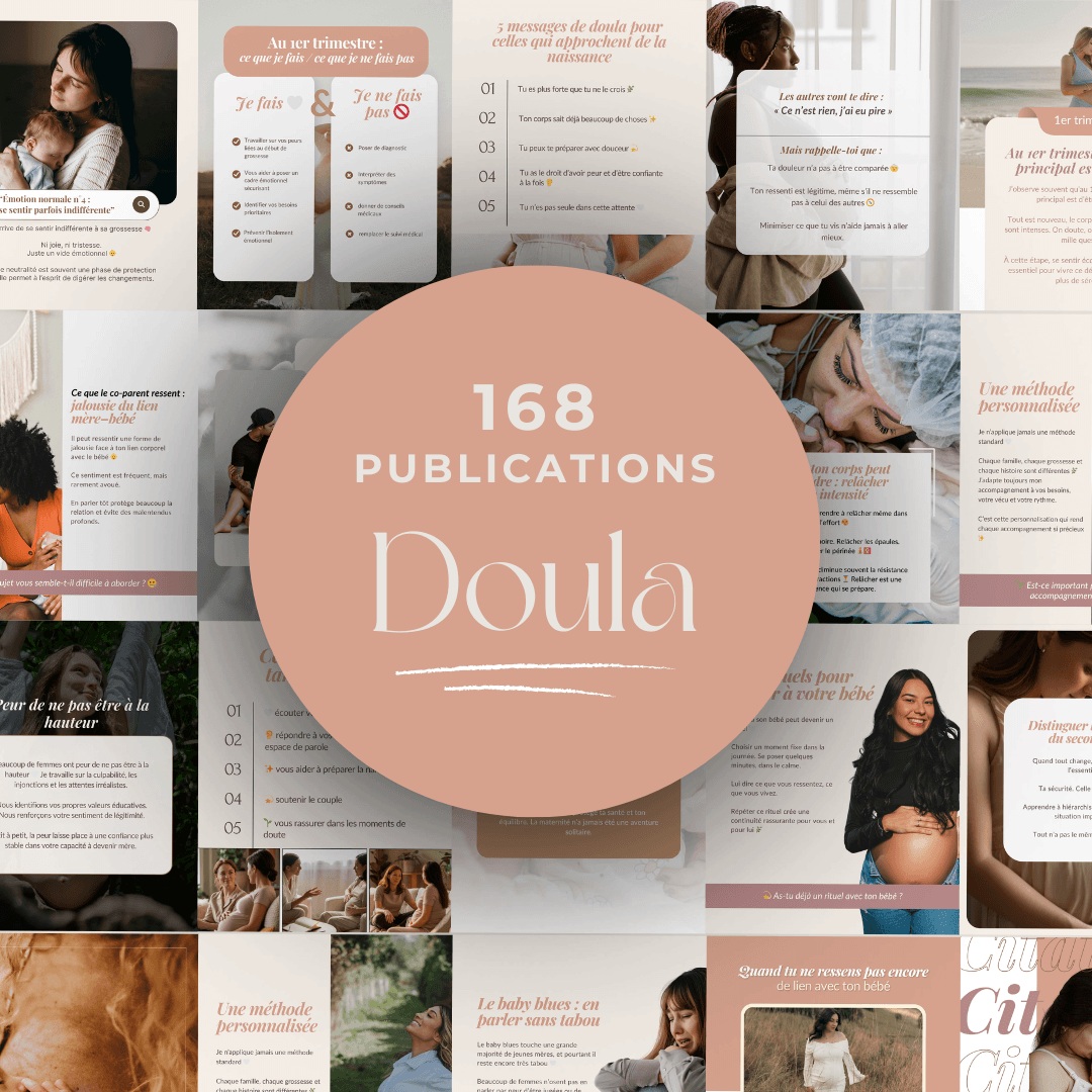 Ce bonus a été pensé pour les doulas et accompagnantes à la grossesse qui veulent créer du lien, faire réagir leur audience et communiquer avec plus de légèreté, sans passer des heures à chercher quoi publier.