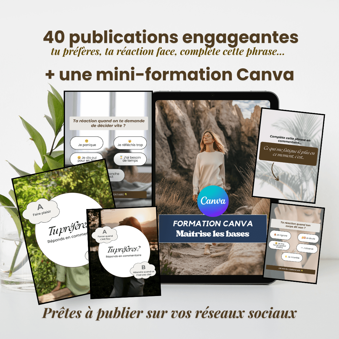 Ajoute à cela une mini-formation Canva pour t'aider à maîtriser pleinement la personnalisation de tes publications.
