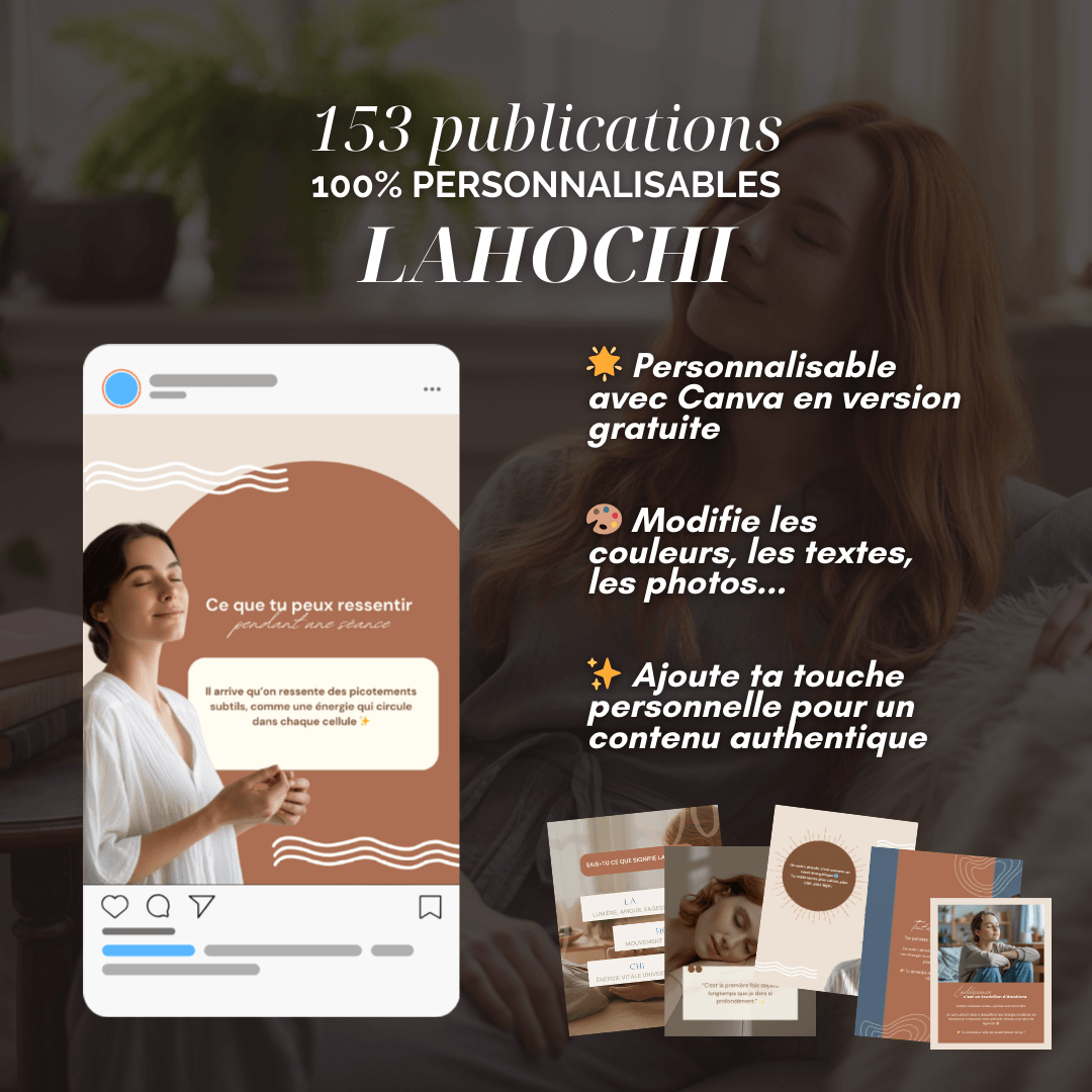 Ce pack de publications est idéal pour les professionnel(le)s des soins énergétiques et les passionné(e)s du Lahochi souhaitant communiquer efficacement sur les réseaux sociaux sans y passer des heures.