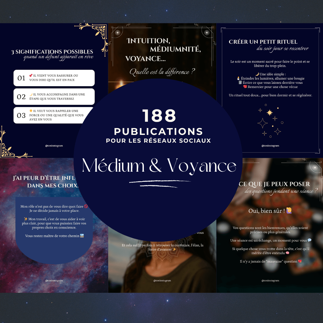 🔍 20 publications "Découverte de la médiumnité et de la voyance". Un thème parfait pour présenter votre approche sans effrayer votre audience.