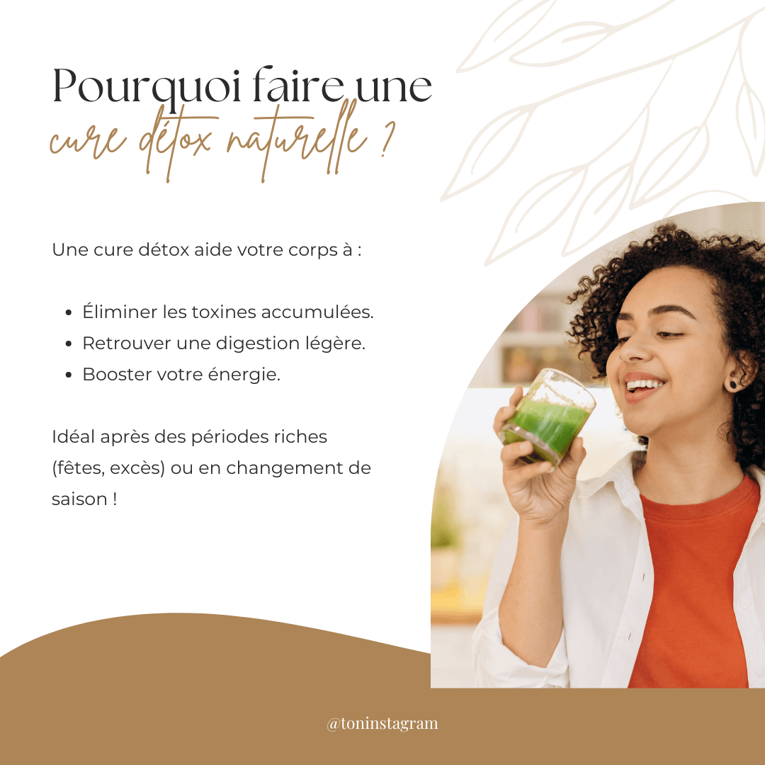 🌱 36 publications "Cures et détox" : apprends à accompagner ton organisme avec des cures saisonnières et des méthodes de détox douce pour éliminer les toxines et retrouver un équilibre global.