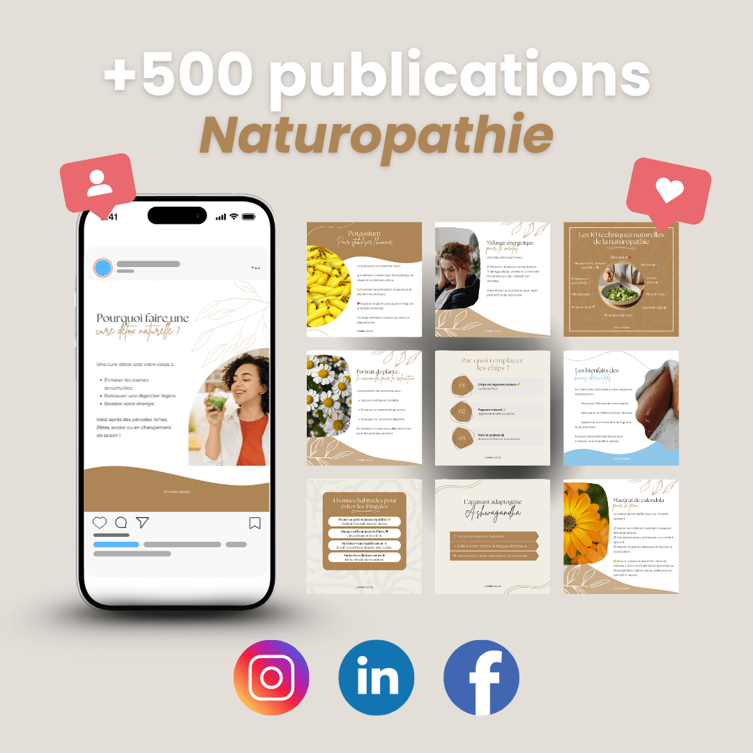 Ce pack de publications est idéal pour les naturopathes souhaitant communiquer efficacement sur les réseaux sociaux sans y passer des heures.
