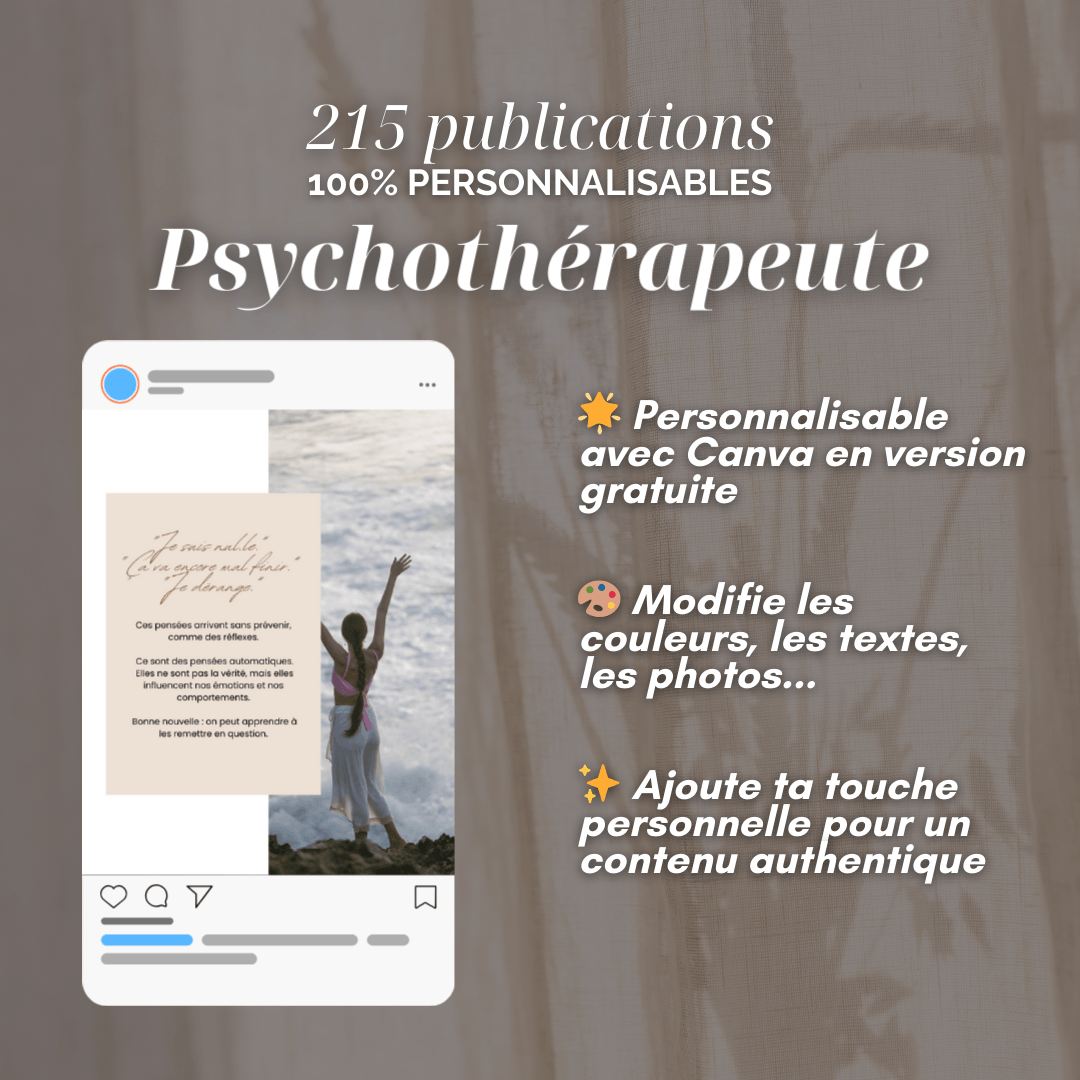 Ce pack de publications est idéal pour les psychothérapeutes souhaitant communiquer efficacement sur les réseaux sociaux sans y passer des heures.