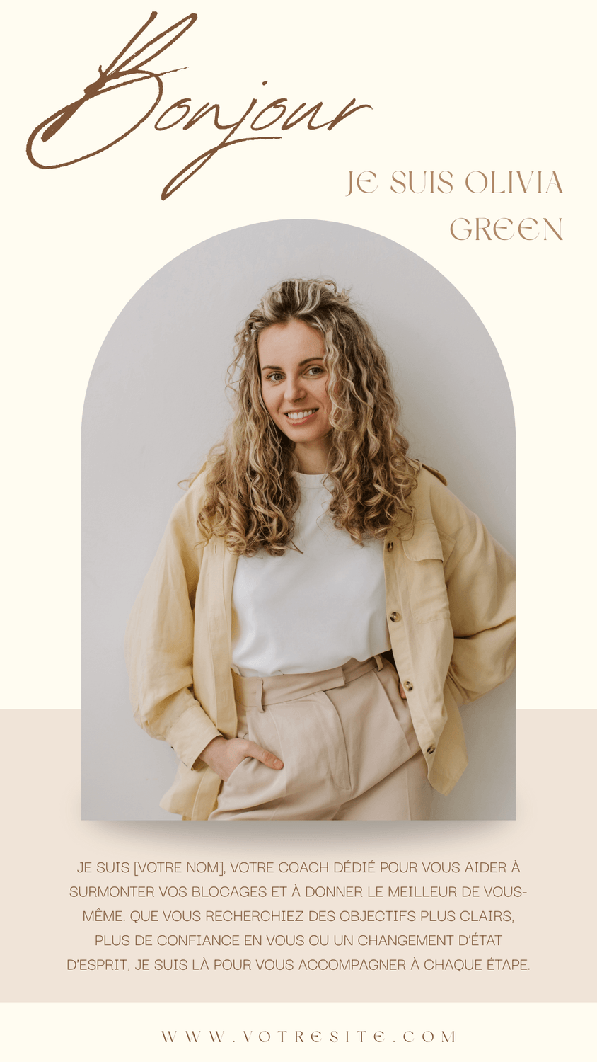 🎨 Ajoute ton propre logo, ton nom, tes photos et tes couleurs.