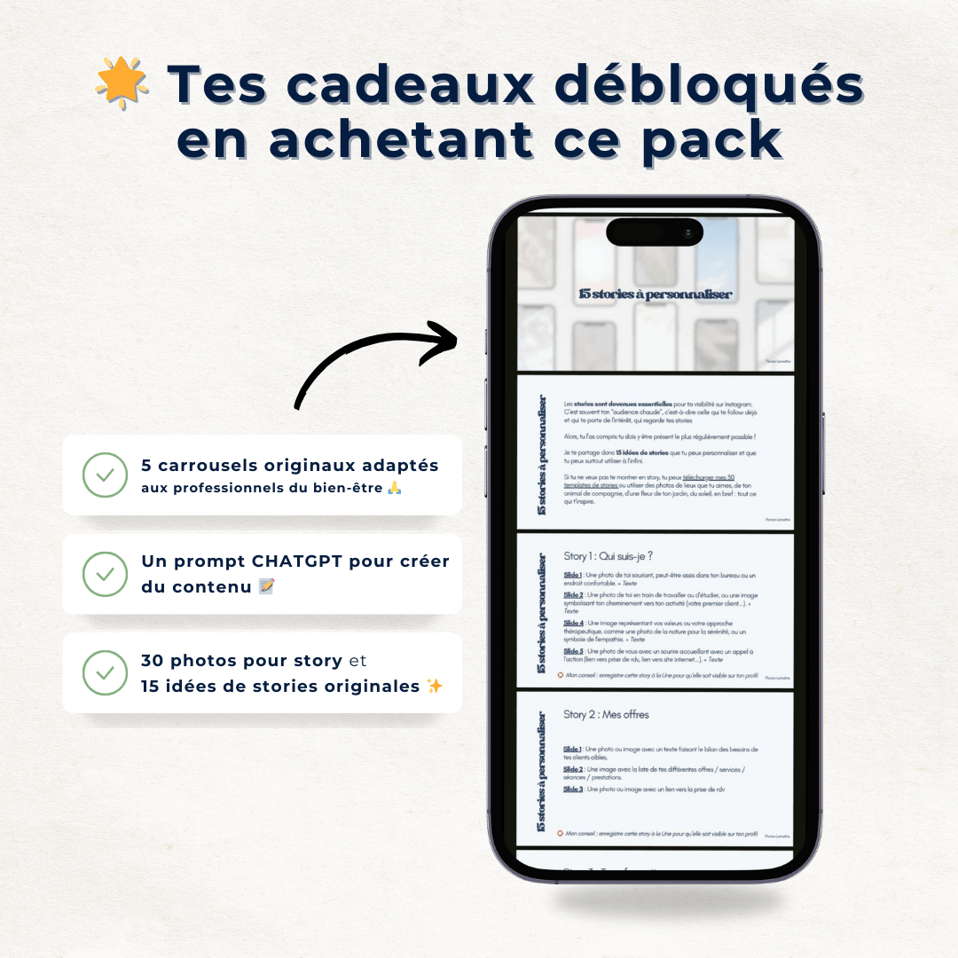 🛠️ Et surtout : j’ai créé plus de 20 packs de publications pour les professionnels du bien-être.