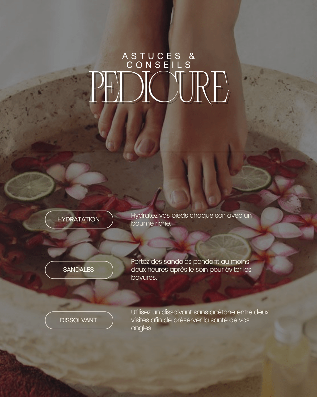 🧖 Pédicure spa & aromathérapie – détente et bien-être à travers des rituels complets.