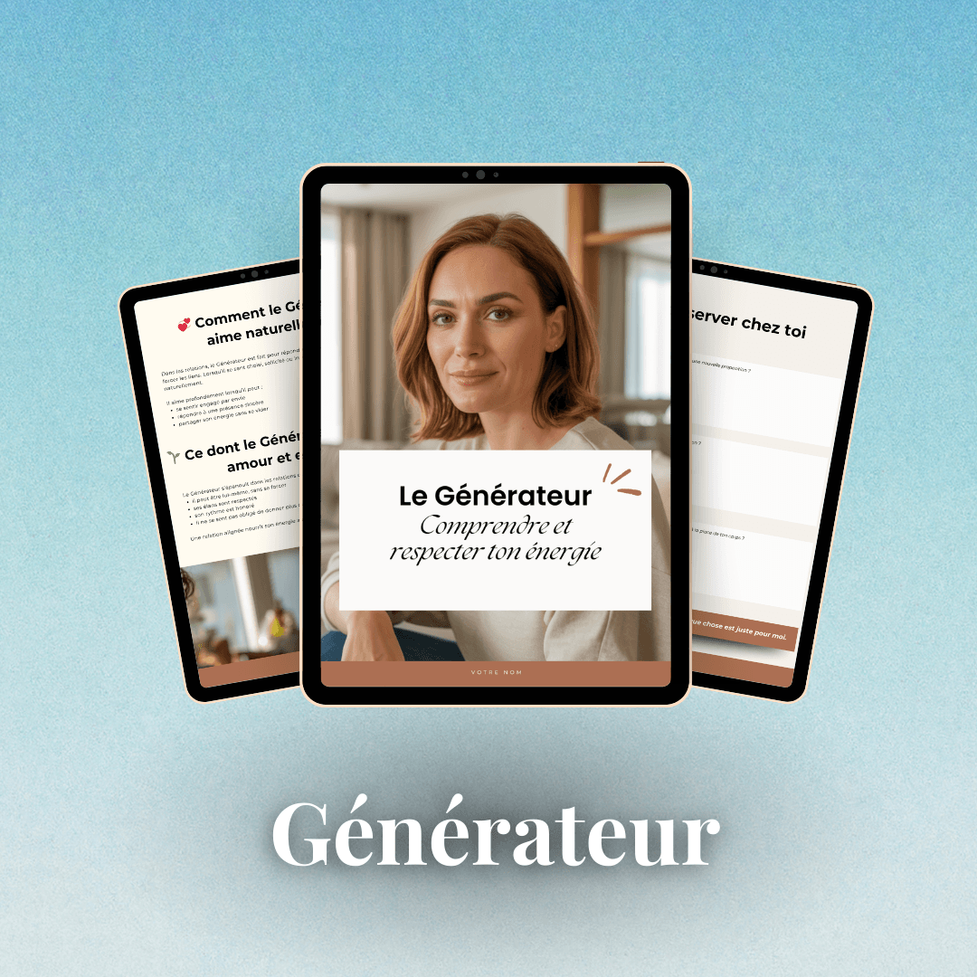 Un support clé en main pour aider tes clients Générateurs à comprendre leur énergie, leur stratégie et leurs zones de frustration. Un guide structuré pour faciliter l’intégration entre les séances et accompagner tes clients vers plus de satisfaction.